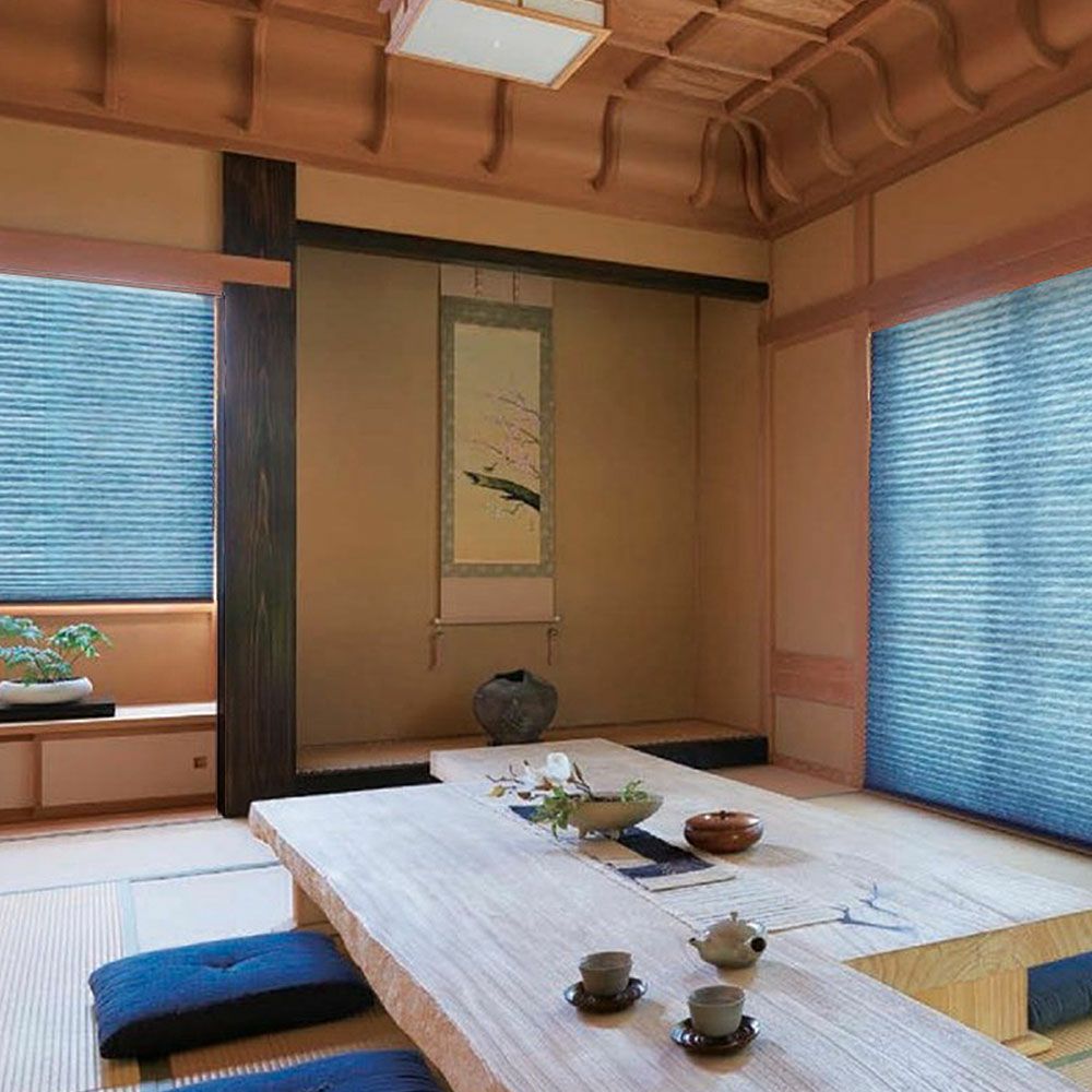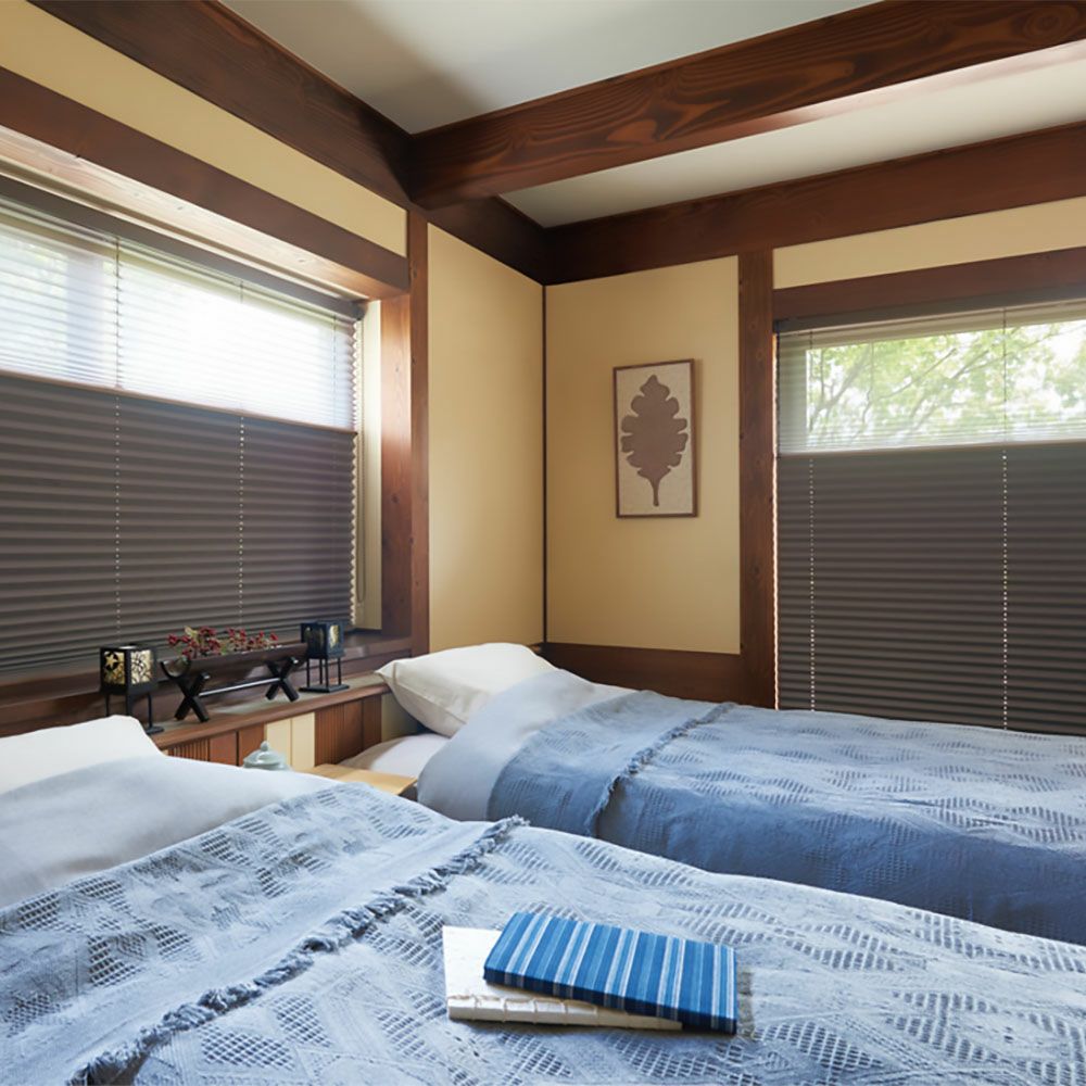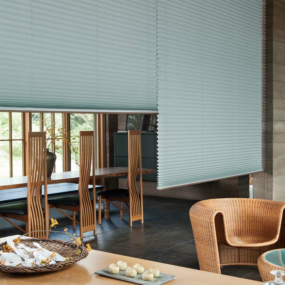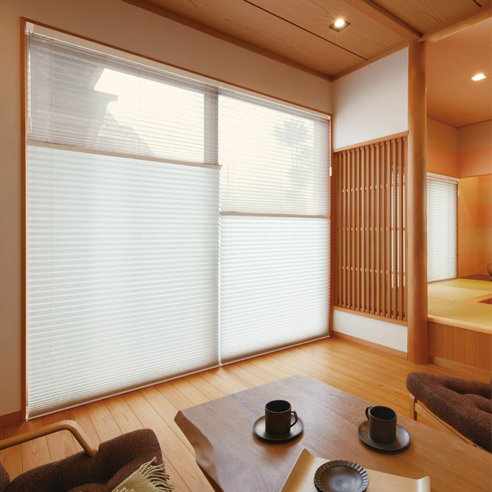 プリーツスクリーンは、じゃばら状の生地を上下に動かす、すっきりとした窓まわりアイテム。