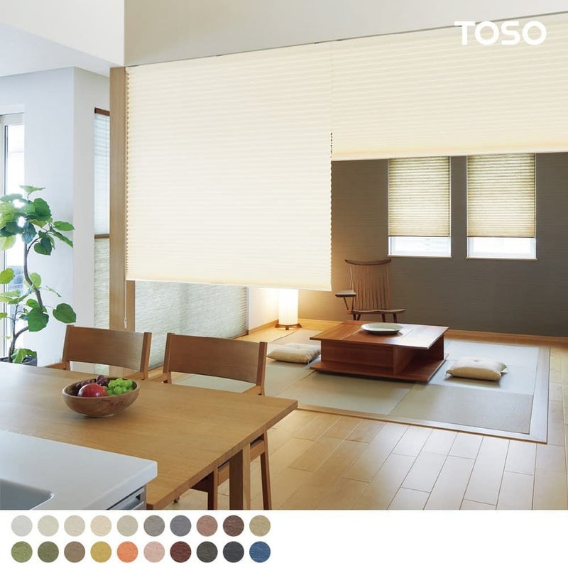 伝統的で心地よい「和」の空間づくりに、全20色からなる<葉月>。リビングの一角に設えた、畳コーナーにぴったりの和紙調のプリーツスクリーンなのです。畳との調和に特化した、広幅も対応のこだわりの逸品を是非、ご堪能ください。