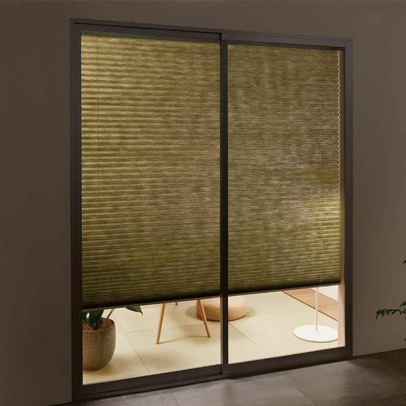 昼間に室外から室内を見た時も部屋の中の様子は見えにくく、安心のプリーツスクリーンです。