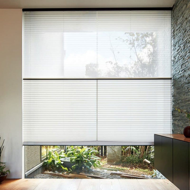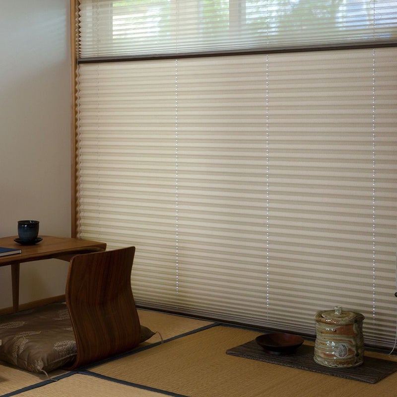 伝統的な地紋や、自然がモチーフの柄を採り入れた生地デザイン。 布織物のプリーツスクリーンは和モダンからナチュラルまで、さまざまな空間に調和します。