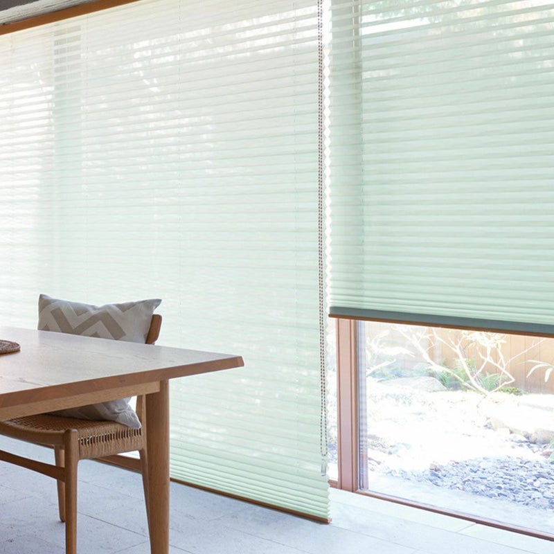 遮熱・UVカット効果のあるプリーツスクリーンが新登場!省エネにも大活躍するので夏場はもちろん一年中必須のアイテムです。
