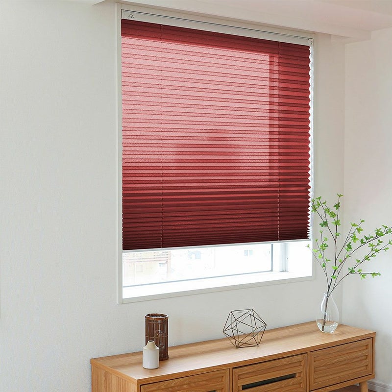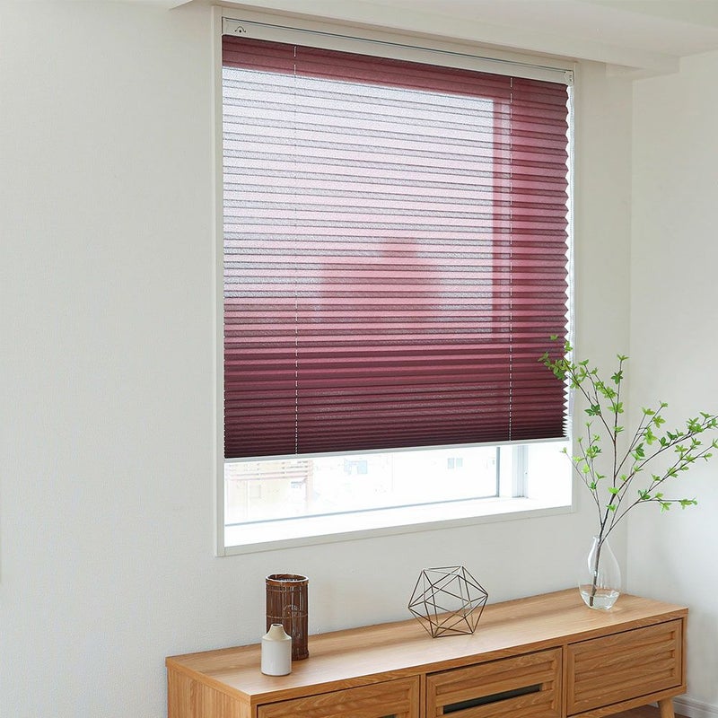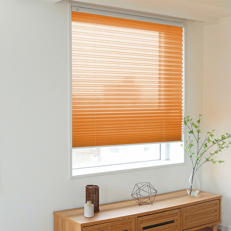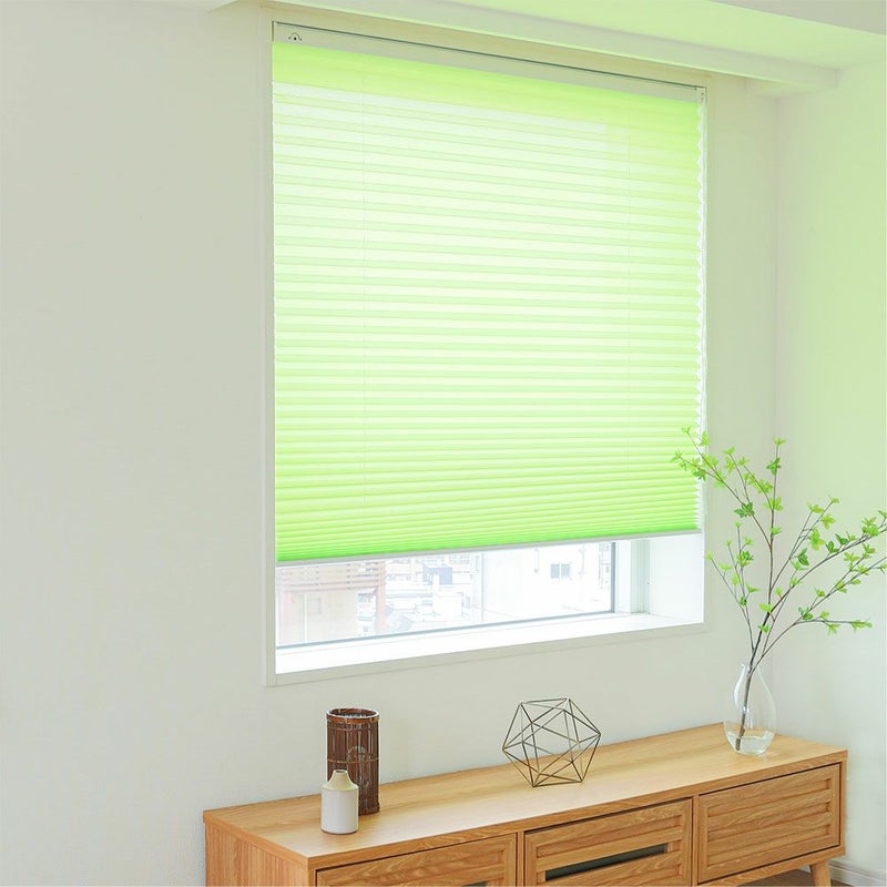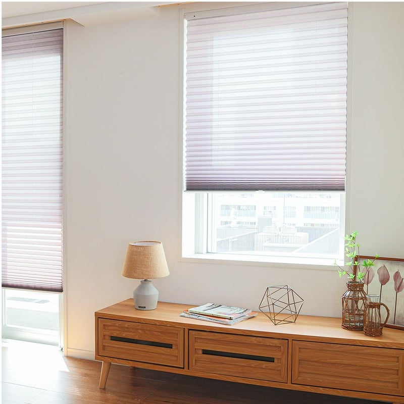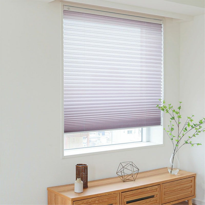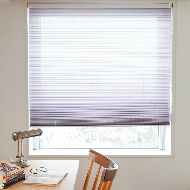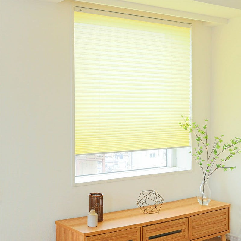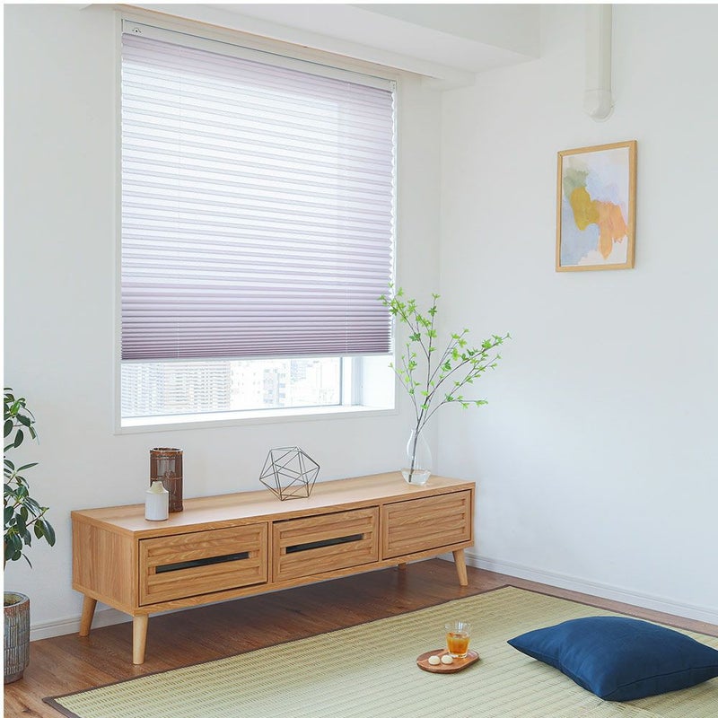 アコーディオンのように畳まれた生地で、モダンな印象のプリーツスクリーンです。和と洋どちらのテイストにもぴったりなナチュラル感がポイント。賃貸の方でも安心してお使いいただける、突っ張り式でご用意しました。