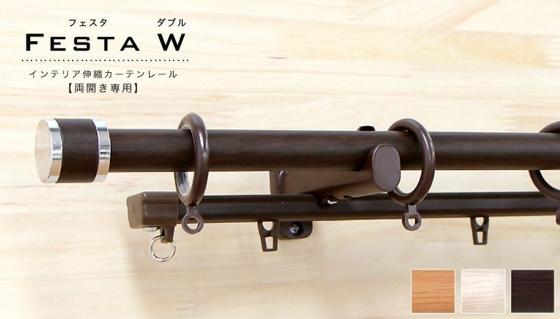 インテリア伸縮カーテンレール「フェスタ」 ダブル(170cm~300cm)
