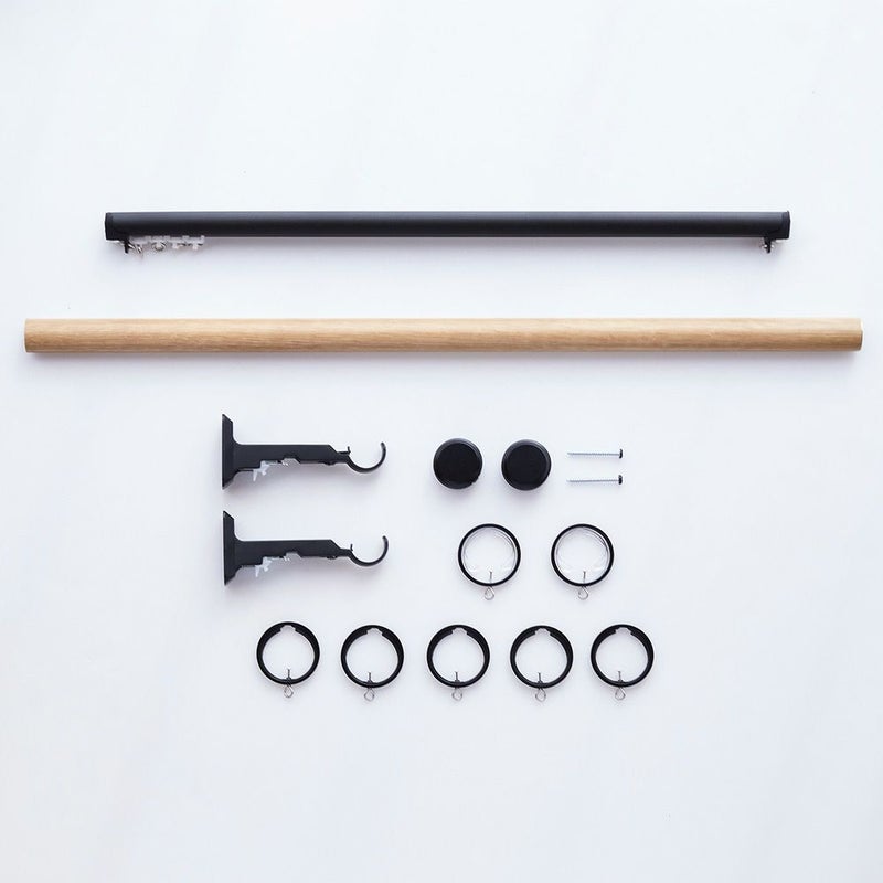 木目×インダストリアルデザインのカーテンレール
