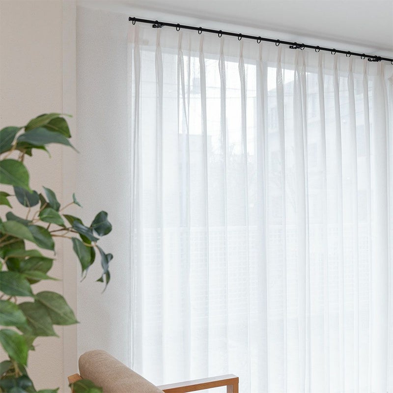【撮影コーディネート】レースカーテン:<ソフィーチェ アイボリー>細身でシャープな印象の「モノ16」は、洗練された暮らしを演出します。シンプルでありながらもおしゃれ感も外さないデザインは、まさにミニマリストの暮らしにフィット。