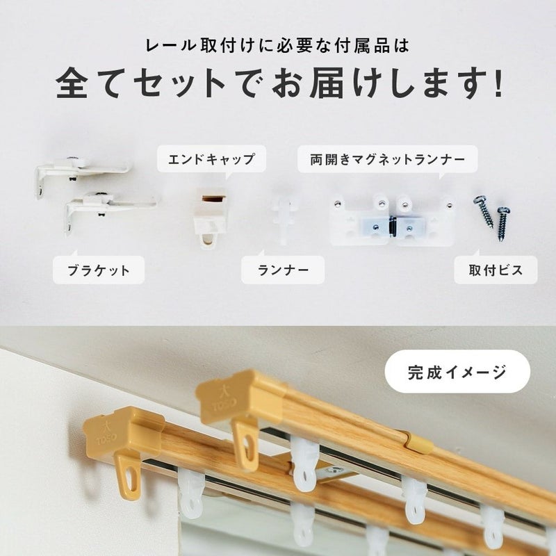レール:2本、ブラケット、取付ビス、ランナー、両開きマグネットランナー、エンドキャップ(固定ランナー)、 補強用クギ |