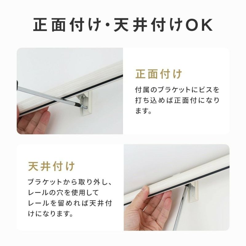 レール取り付けに必要な部品はすべてセットでお届けします。専用の工具は不要で、とても簡単に設置できます。女性でも、たったドライバー1本で、あっという間に設置完了!