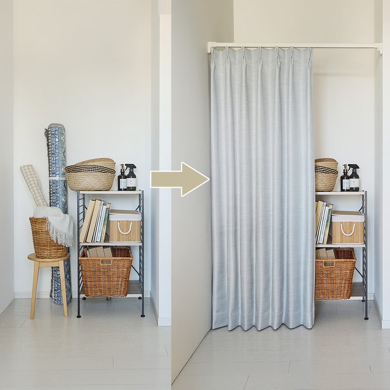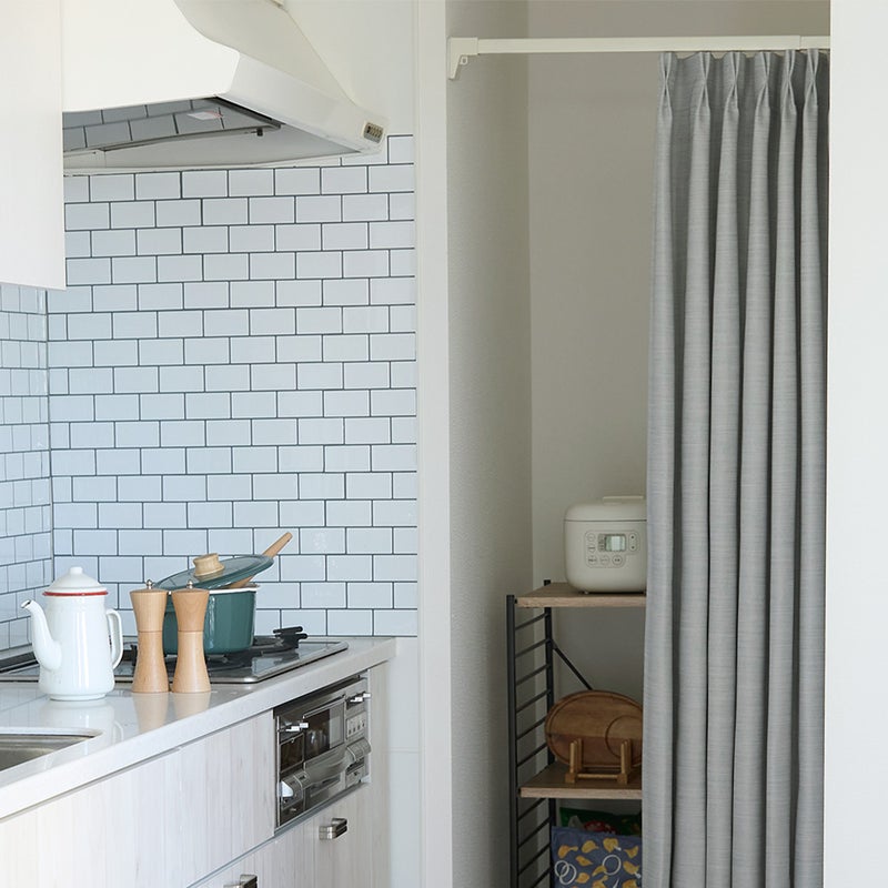 物が増えるとはどうしても、生活感が出てしまうもの。そんな気になるスペースも、カーテンでさっと目隠しするだけで、すっきりとした印象に。見せたくない場所は上手に隠して、毎日の暮らしをもっと快適で心地よい空間へ◎