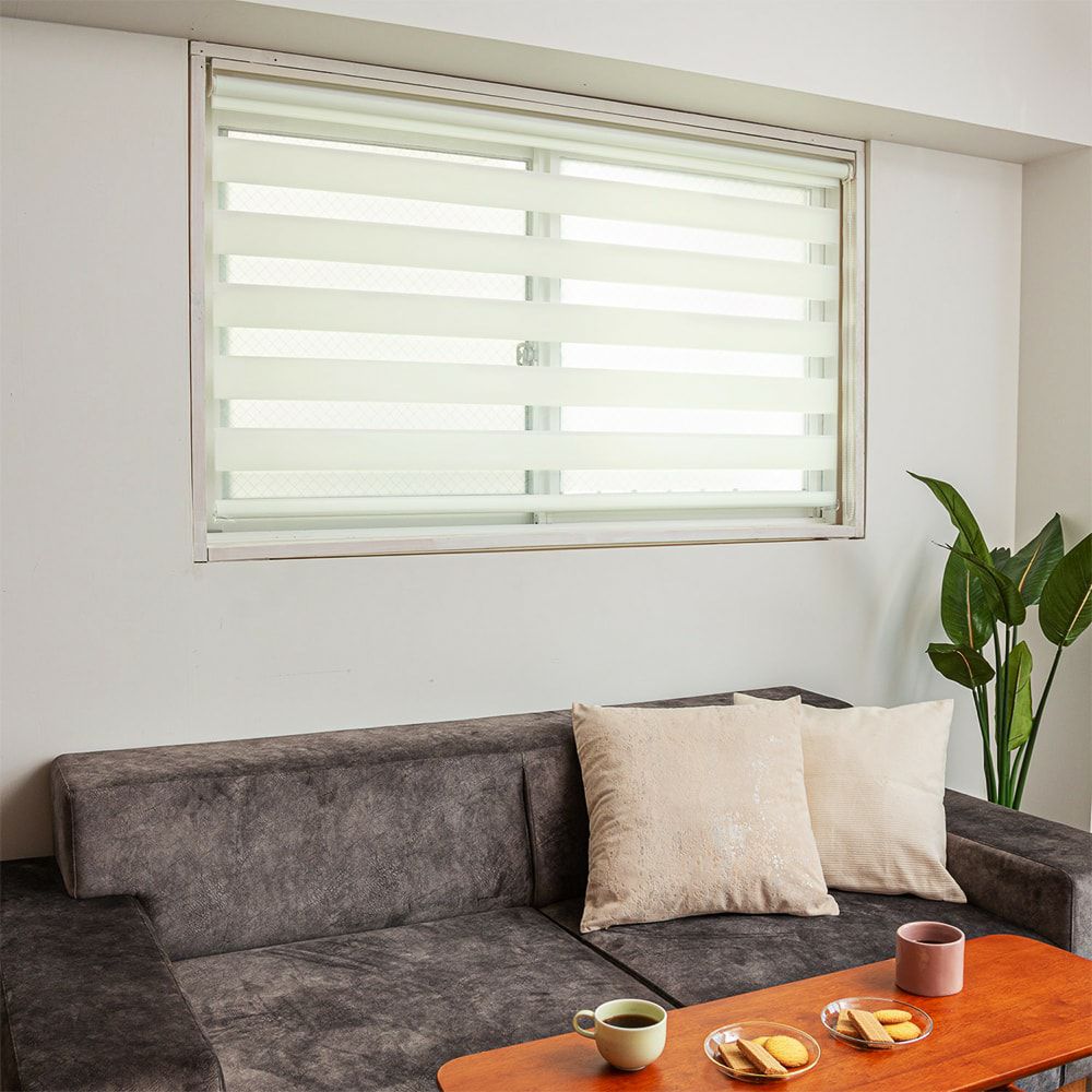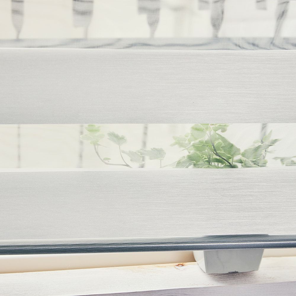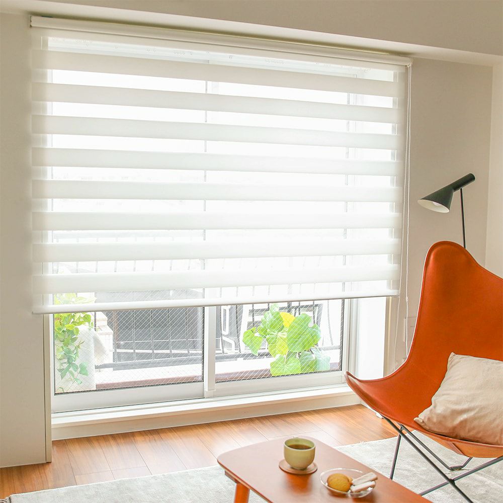 「光を透過する生地(透明)」と「光を遮る生地(不透明)」の2種類を組み合わせることで、目隠しをしながら光と風をコントロール。外の視線を遮りながらも部屋の明るさと暗さが調整できる 優れもの。風通しをよくしたいなら、透明部分が多くなるように調節しましょう。