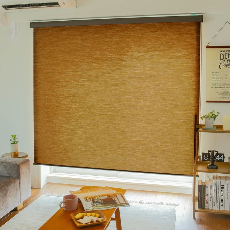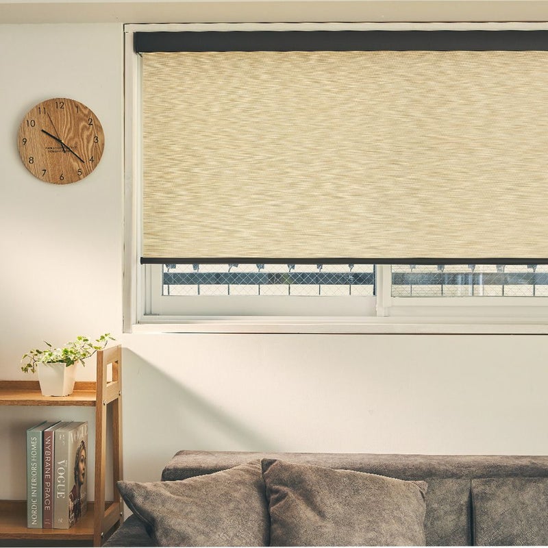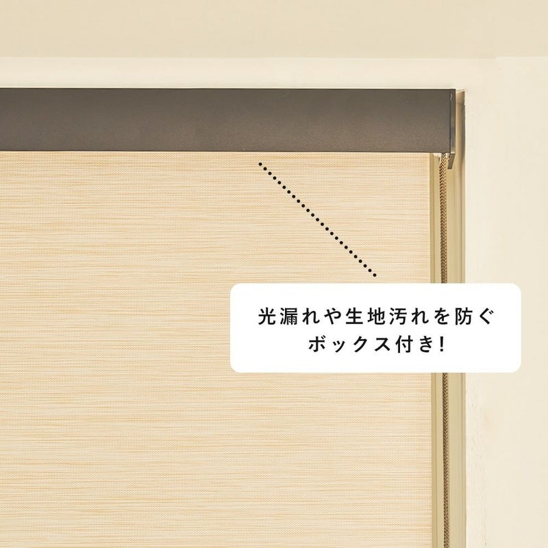 ボックス付きロールスクリーン節感のある生地は、ナチュラルなインテリアから和室などにも合わせやすいロールスクリーン。 落ち着いたインテリアに仕上げたい方にオススメのシリーズ。 光漏れも軽減する「ボックス機能」付きなのも嬉しいポイント〇