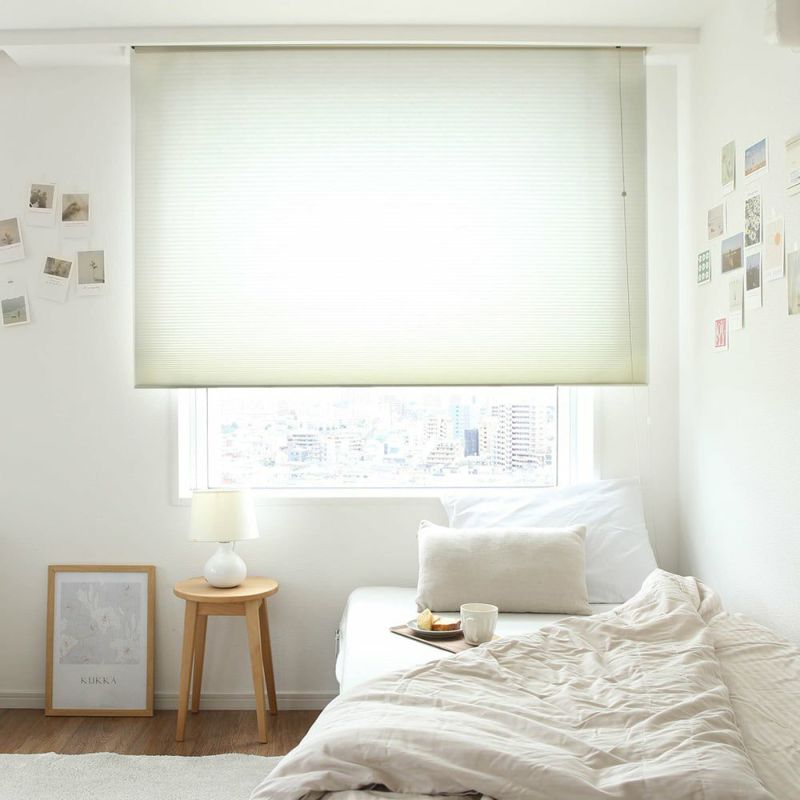 カーテンと違い上下に昇降するタイプなので部屋に取り込む光を調整しやすいのもポイント!自分好みの快適空間がこれ1つで叶います。お部屋がすっきり見えるハニカムスクリーンは場所を選ばずスッと馴染じみます〇