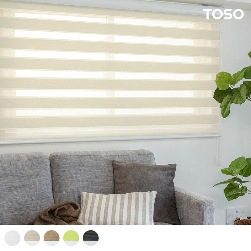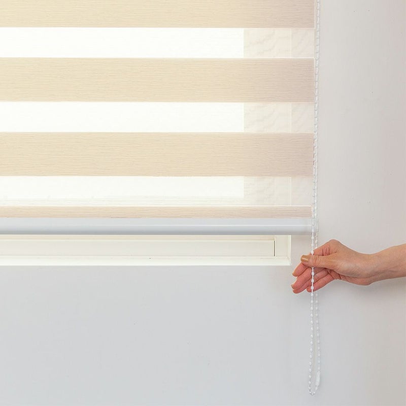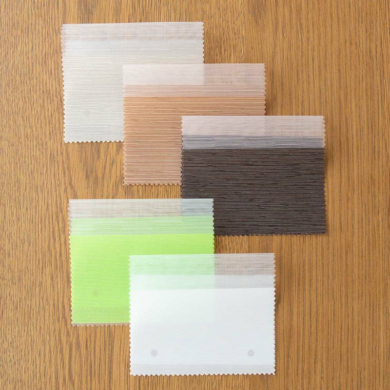 その名の通り、光を調節できるロールスクリーンです。2枚重ねの生地で自由に光のコントロールができる、ちょっとユニークな仕組み。1台で目隠し・ほど良い採光・開閉の3役をこなす、新感覚のアイテムです。