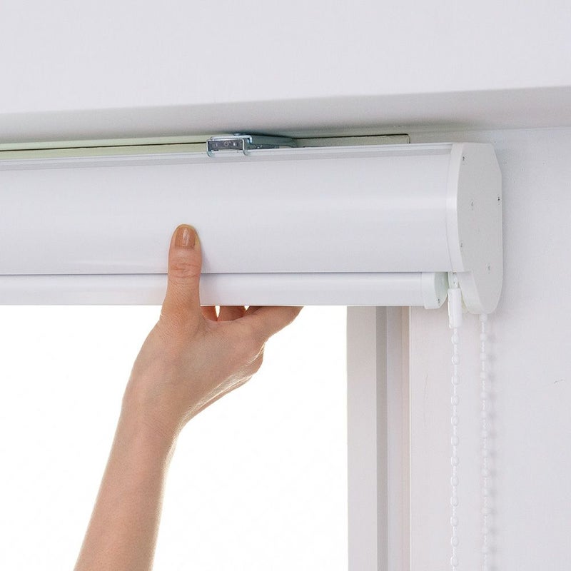取り付けの動作は2つ。窓に取り付けたブラケット(金具)にひっかけて、かちゃっと音がするまで押し込む。少し力は要りますがやり方は簡単なので、初めてでも大丈夫。
