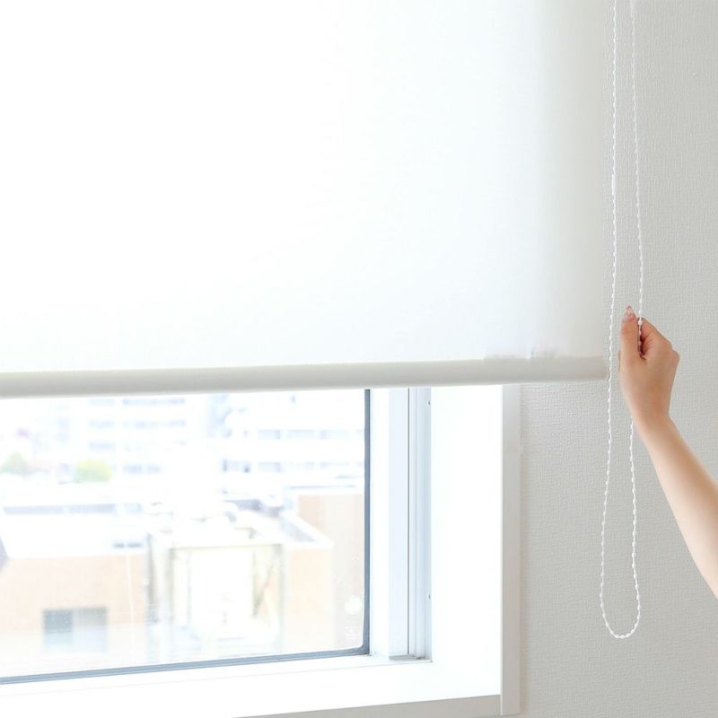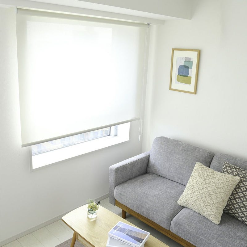 柄の無いシンプルなデザインで、朝日をたっぷり浴び、快適な一日を過ごしたい方におすすめのロールスクリーン。真っ暗には遮光せず、日中も優しい光を取り込んで、明るい雰囲気に!
