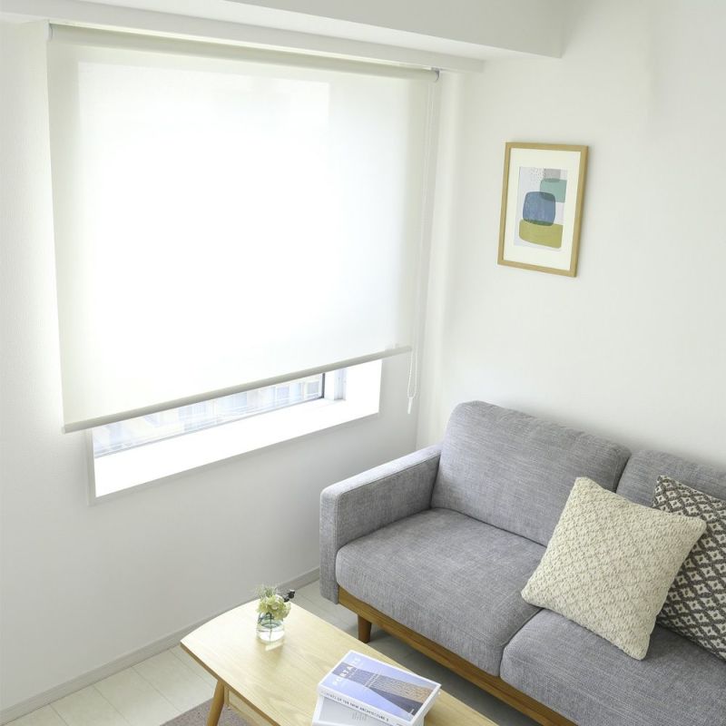 ロールスクリーンの中でも圧倒的人気なのはホワイトカラー。壁の色が白の場合、ロールスクリーンをホワイトに選ぶと統一感がでて最も広い空間に見えます。最大270cmの横幅まで製作可能なので、大きな窓にロールスクリーンを使いたい方にも、ぴったりの1枚です!