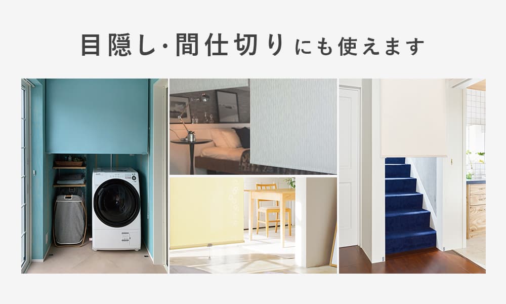 ロールスクリーンを間仕切りとして使う方法もおすすめです!ロールスクリーンなら圧迫感もなくお手軽に、収納スペースなどの目隠しや間仕切りが可能。