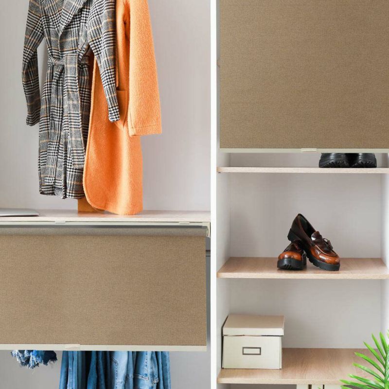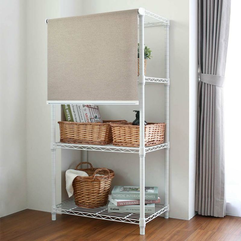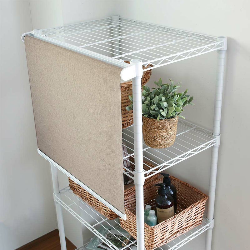 オプションでワンタッチブラケットとL字(接着)ブラケットをご用意。もちろんラックに限らず、色んな場所で使えるロールスクリーンです。窓に設置だけでなく、カウンターキッチンや、ドアのないクローゼット、押し入れなどの目隠しにも最適です。