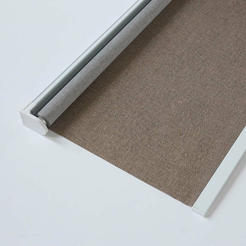 リーズナブルなお値段で、送料無料。ひとりでも簡単に設置が可能な「クイックロールスクリーン」。ブラケットを変えるだけで使えるところは自由自在。 ワンタッチブラケットを使えば、小窓などにも使えるので小窓をスッキリ整頓したい方にもおすすめです。落ち着きのあるブラウンをベースに細かいヘリンボーン柄でさり気ないデザイン性を楽しめる生地です。