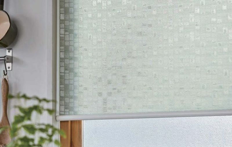 タイル柄のはっ水生地です。使いやすいグレーとアクセントになるグリーンの2配色です。キッチンや洗面所などの水回りに安心してご使用いただけます。