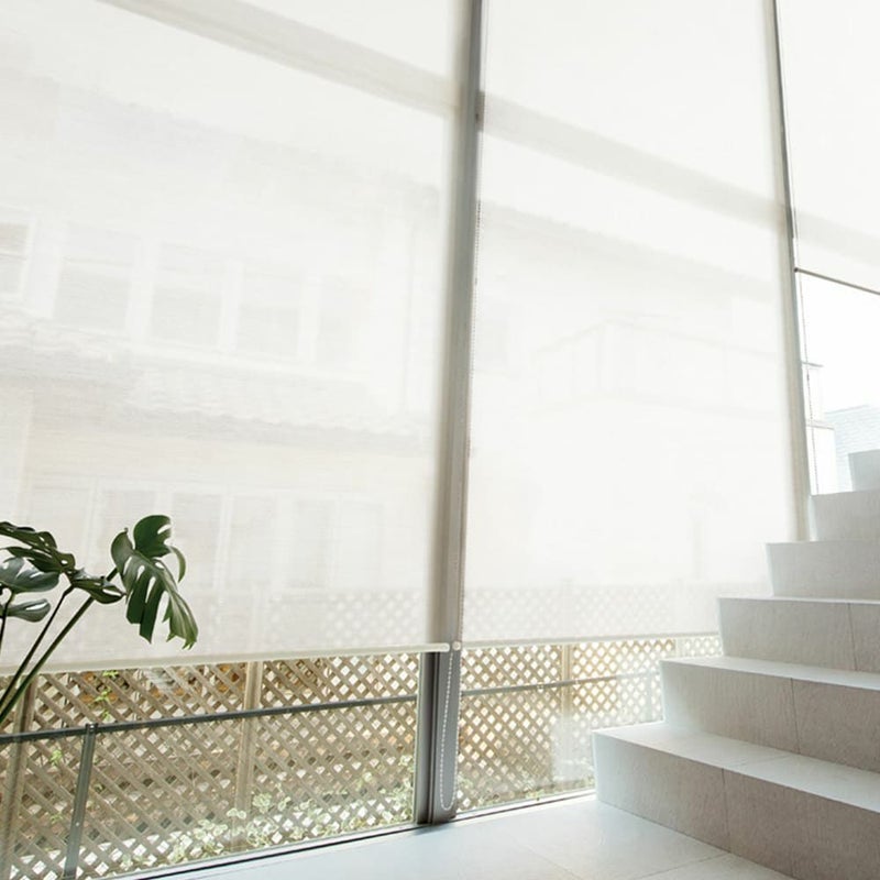 真っ白で爽やかなピュアホワイトは、景観を遮り過ぎず、すっきりとした印象に。 機能で選ぶなら、遮熱ミラーレースロールスクリーンがおすすめです。