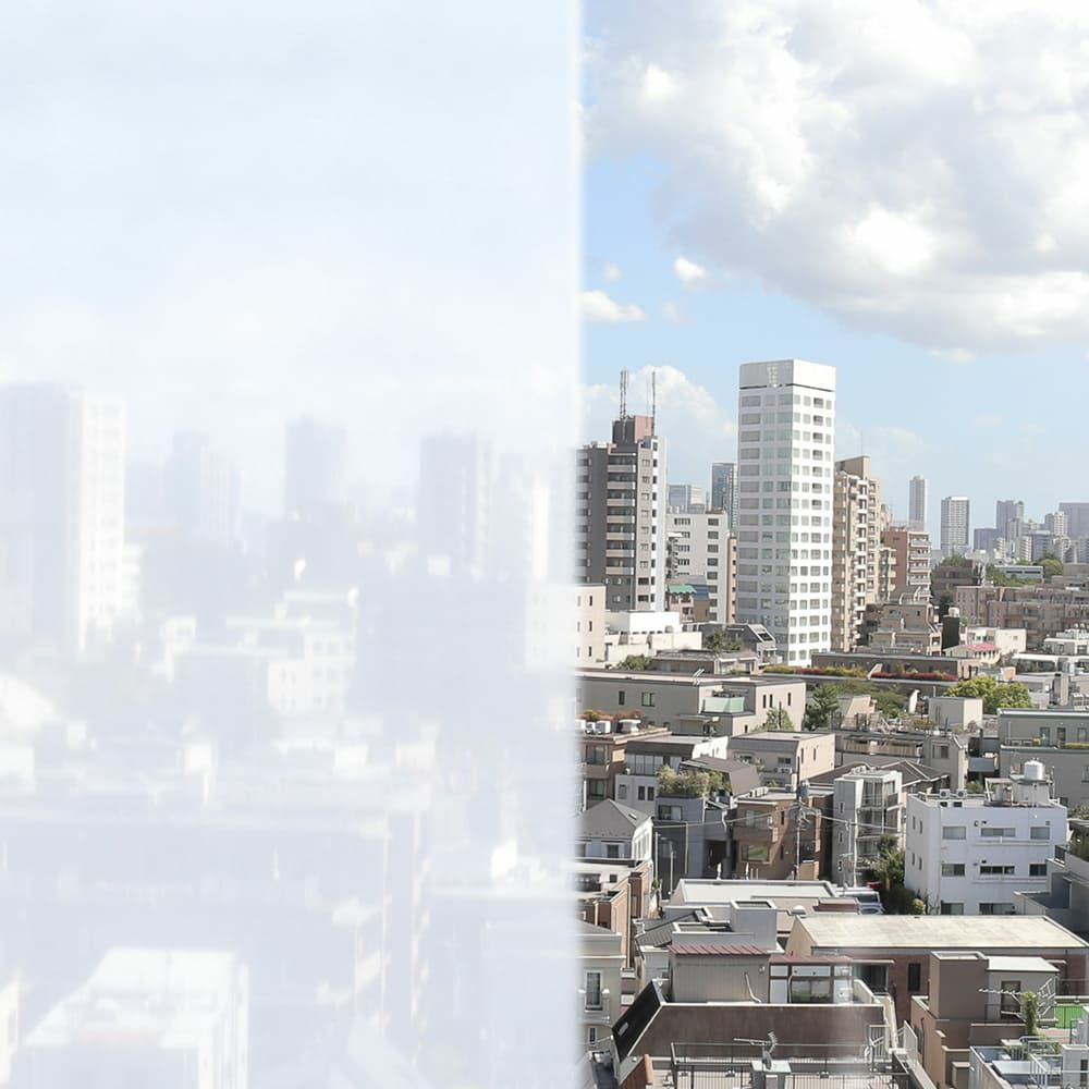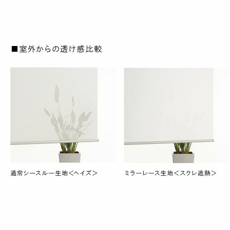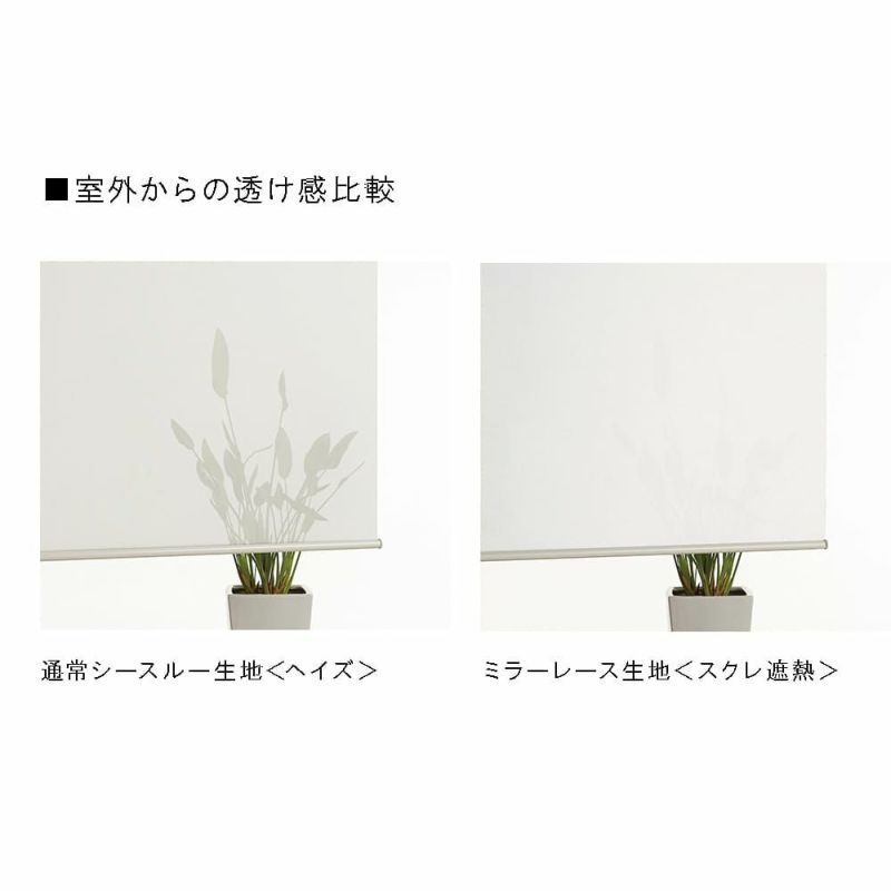 遮熱効果だけでなく、ミラーレースの為、裏面の生地の光反射により外から室内の様子が見えにくく、日中のプライバシーを守る役目も果たします。 -