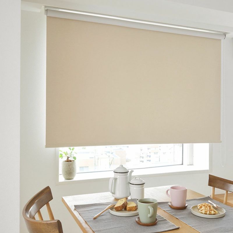 カラーによって遮光等級は変わりますが、1級遮光も2級遮光も、眩しい陽射しはしっかり遮断。最大サイズの200cmまで幅継ぎも入らない見た目の綺麗さも言う事なし。カーテン生地だからこそ、ファブリック感のぬくもりを感じる、機能と見た目を両立したロールスクリーンです。