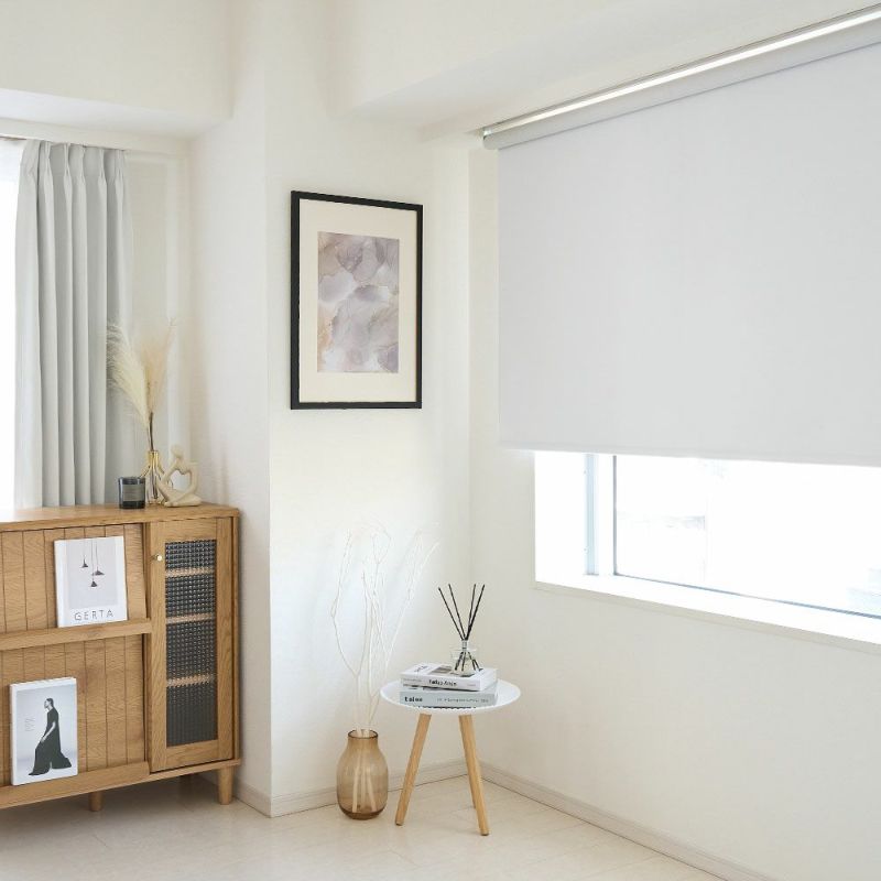 柔らかくマットな質感が、女性らしいお部屋にマッチする。1級遮光をはじめとした機能をしっかり詰め込み、グレーホワイトインテリア向けに2色に絞ってお作りしているカーテン<クラッシー>で作るロールスクリーンです。
