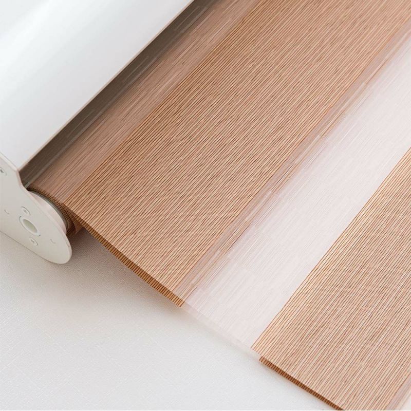 <ノブレス>は調光ロールスクリーン「ビシック」シリーズの中で、一番ナチュラル感のあるタイプ。ボーダー柄はざっくりした表情の織地と、光沢のある透けるオーガンジーの異素材の組み合わせ。ナチュラルな雰囲気なので、インテリアにしっくりと馴染んでくれます。