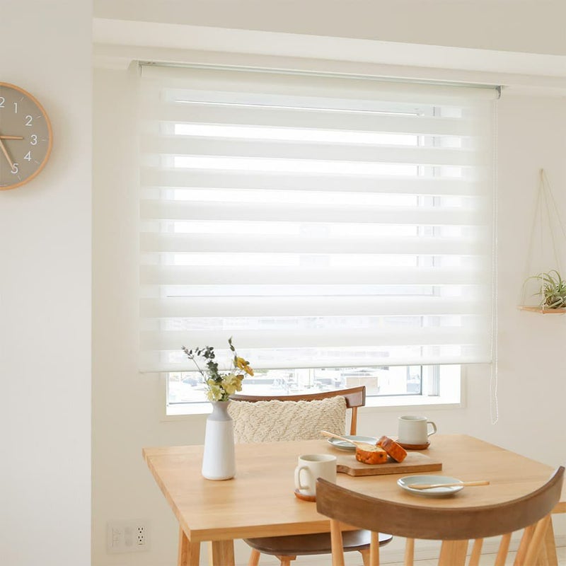 2枚の生地を使って、室内に優しい光を取り入れながら、同時に目隠しもできる。2種類の生地の分量は自分でいつでも変更できるから、リビング、寝室、子供部屋など場所を選ばずお使いいただけます。