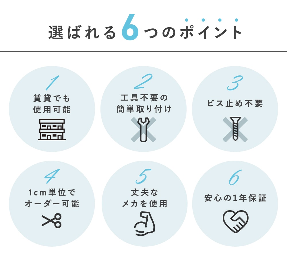 ドライバーも金具も必要なし。届いたその日に簡単に取り付けができる優れた設計。女性でも簡単に取り付けが可能です。