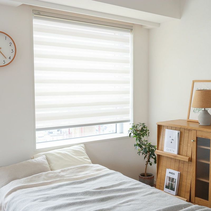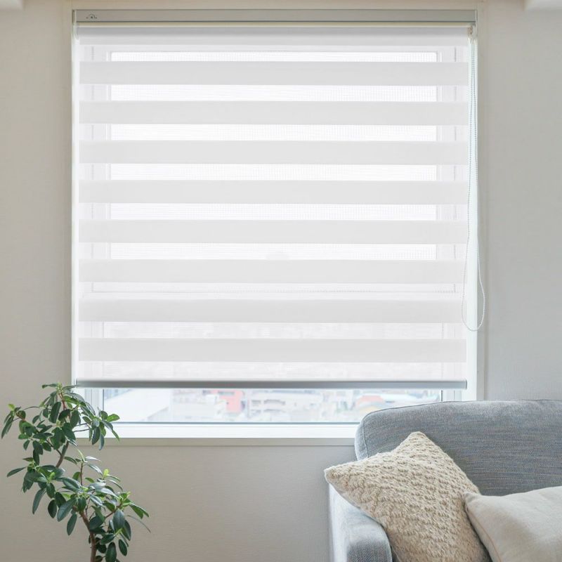 室内に取り込む光の量を細やかに調節できるスクリーンのことです。 透け感の異なるボーダー状の生地をスライドさせることで、採光の度合いを自由に調節できるところが特徴。