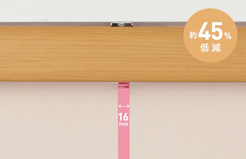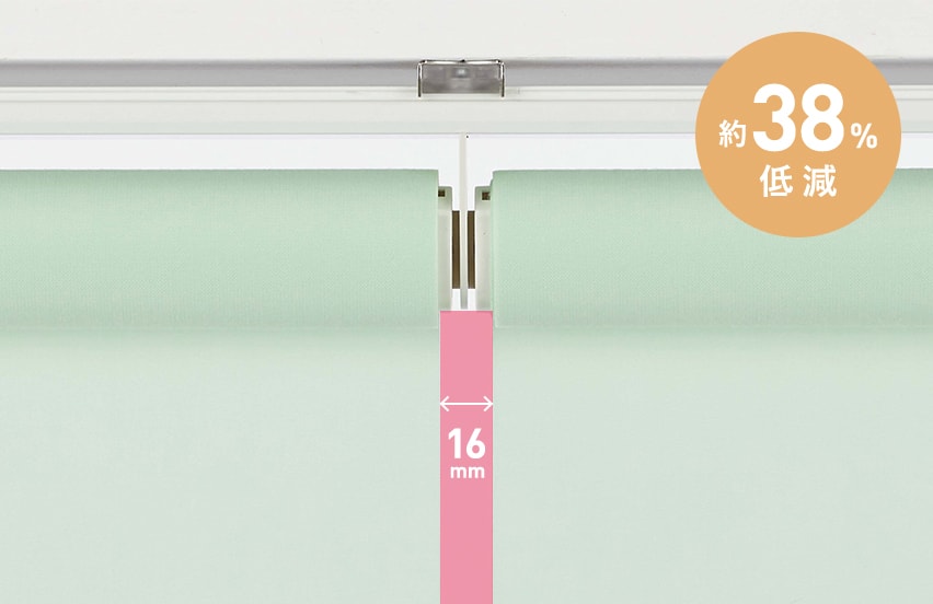 生地間の隙間の違いです。カバータイプは上部からの光漏れも押さえ、生地間の隙間は約45%低減します。