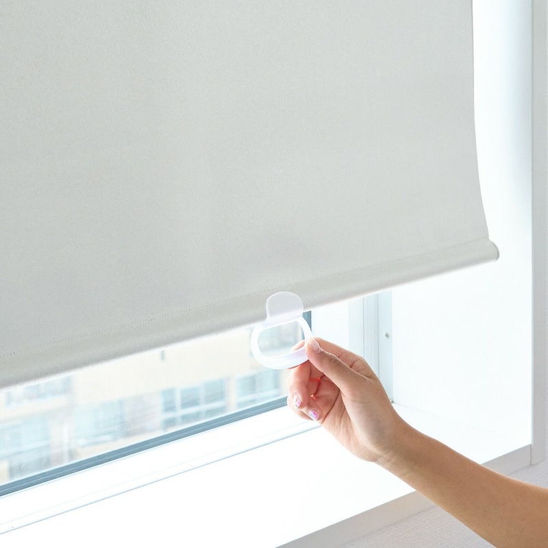 カーテン生地のロールスクリーンで需要が高い小窓には、プルグリップ式もおすすめ!ちょっとした開閉をする事の多い窓には楽々操作でとっても便利♪ スケルトンなので、目立たないところも◎