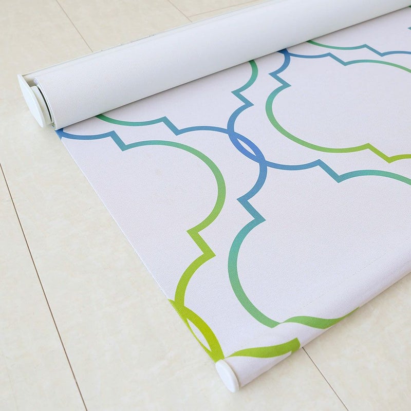 コラベルタイルをグラデーションラインで描き、シンプルなのに目が離せない。パッと目を引くような、ありそうだなかったデザインのロールスクリーンが、当店限定で新発売!