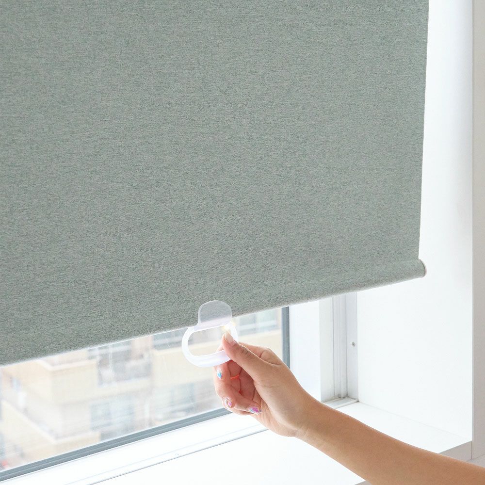 カーテン生地のロールスクリーンで需要が高い小窓には、プルグリップ式もおすすめ!ちょっとした開閉をする事の多い窓には楽々操作でとっても便利♪ スケルトンなので、目立たないところも◎