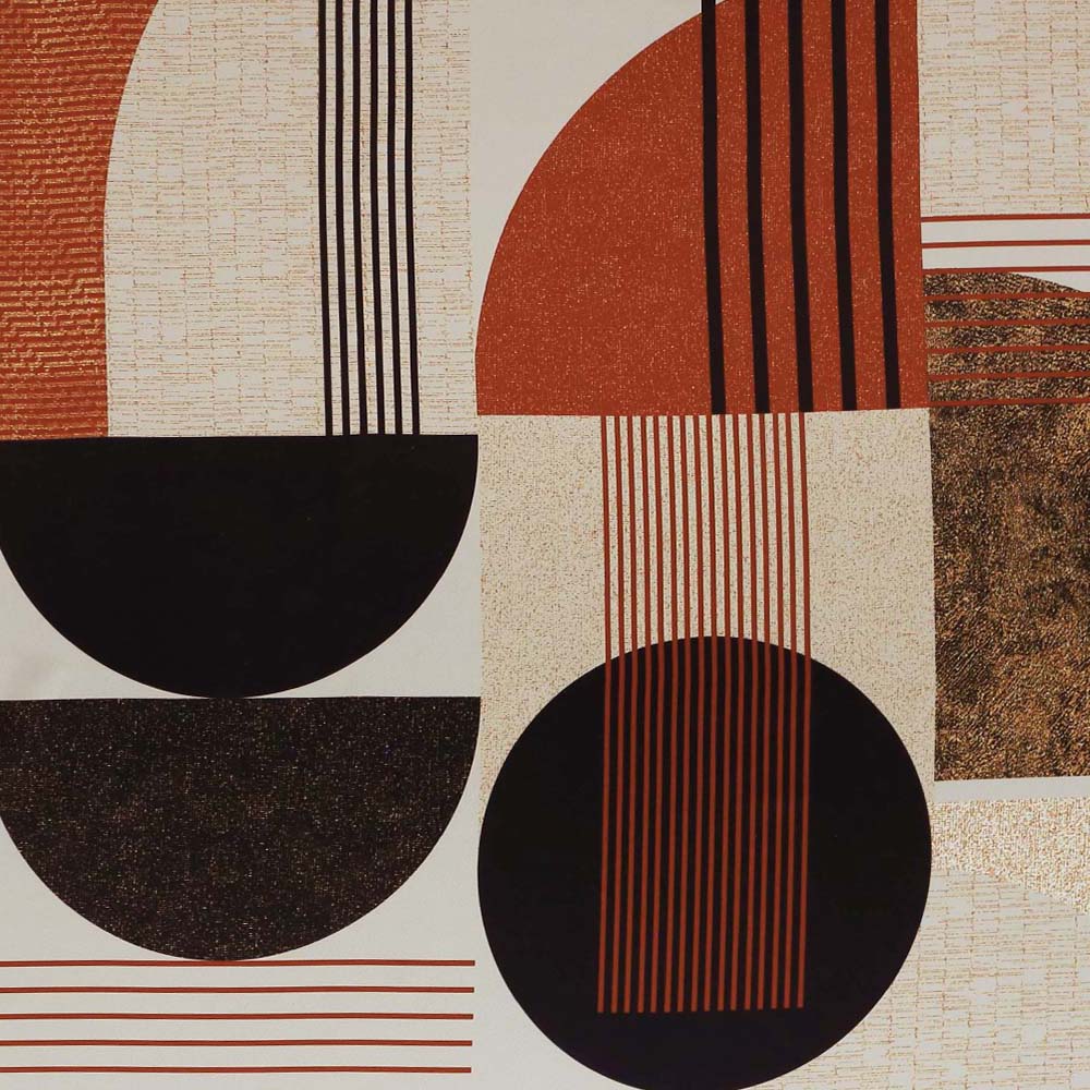 無駄な装飾をそぎ落とし、直線と円形だけで構成されたアールデコスタイルをベースに、さらに洗練さをプラス。考え抜かれたパターン、モノトーン×レッドのシャープな色の対比が美しい。 -