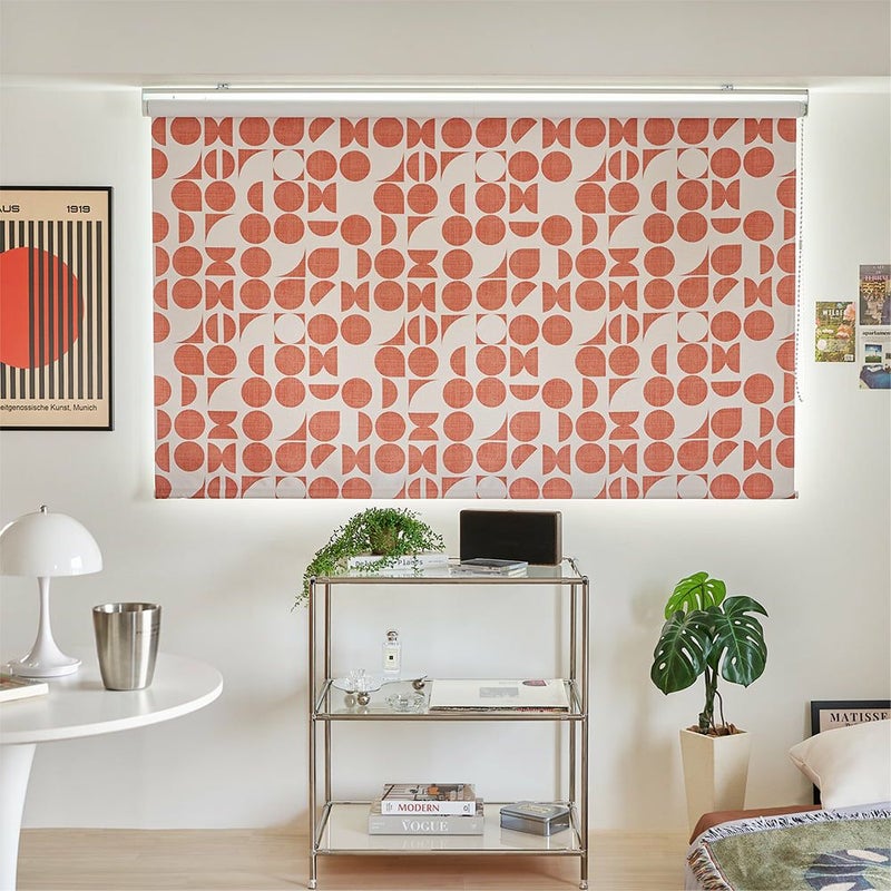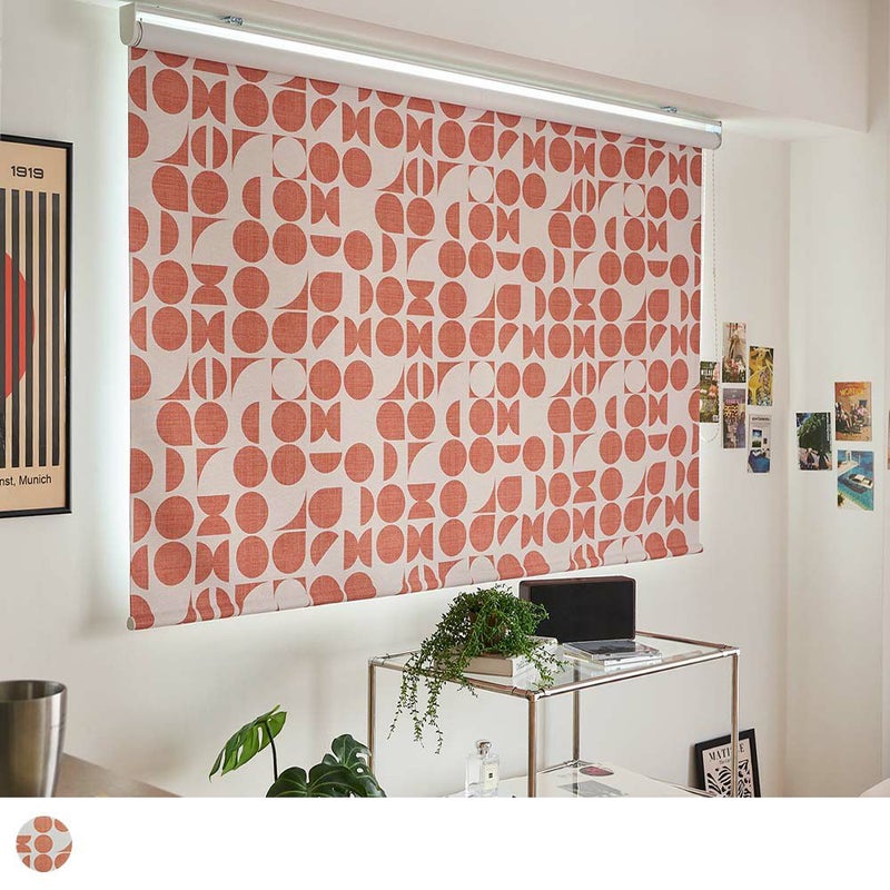 ミッドセンチュリー期によく見られた、どこか懐かしさを感じさせる幾何学柄を1面に落とし込んだ、スペシャルな遮光ロールスクリーンです。雰囲気のあるカフェで過ごしているような、なにかに没頭できる空間を演出します。 趣味時間を大切にするハイセンスボーイにおすすめしたい、味わい深い雰囲気の1枚です。