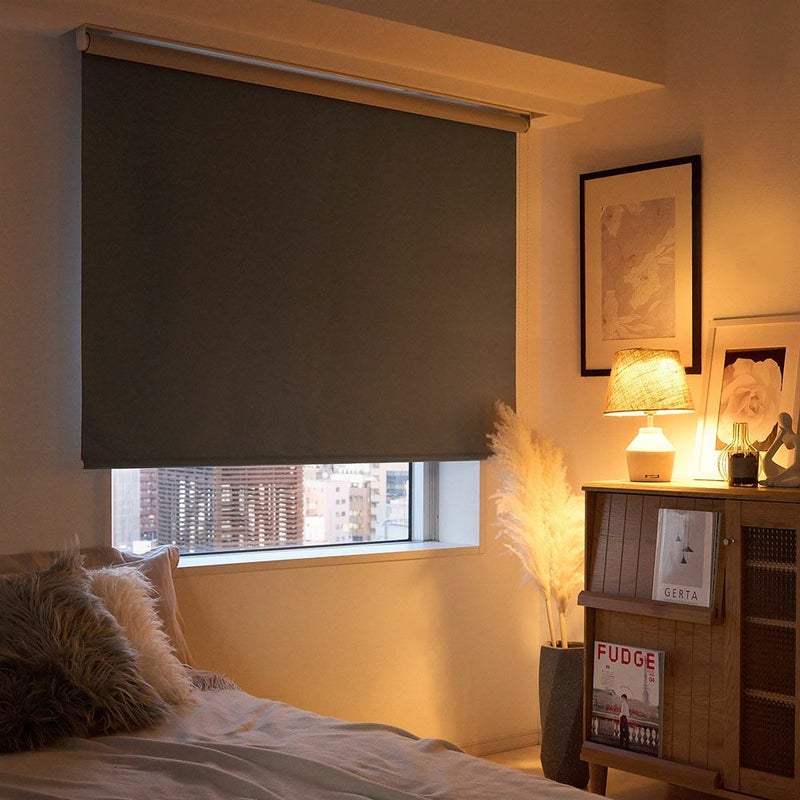 ロールスクリーンの場合、わずかに隙間を開ける事で、1級遮光でも眩しくない程度に僅かな隙間を開けて、朝日を取り込むことも可能。