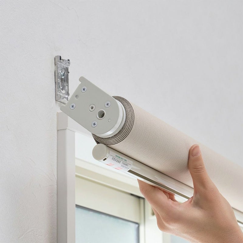 「ロールスクリーン初めて使うけど…ロールスクリーンを付けるのって難しい?」いいえ!天井や正面にブラケットを設置したら、本体をカチッと付けるだけで終わる簡単な取り付けです。女性一人でも取り付けらるほど、意外と簡単なんですよ!