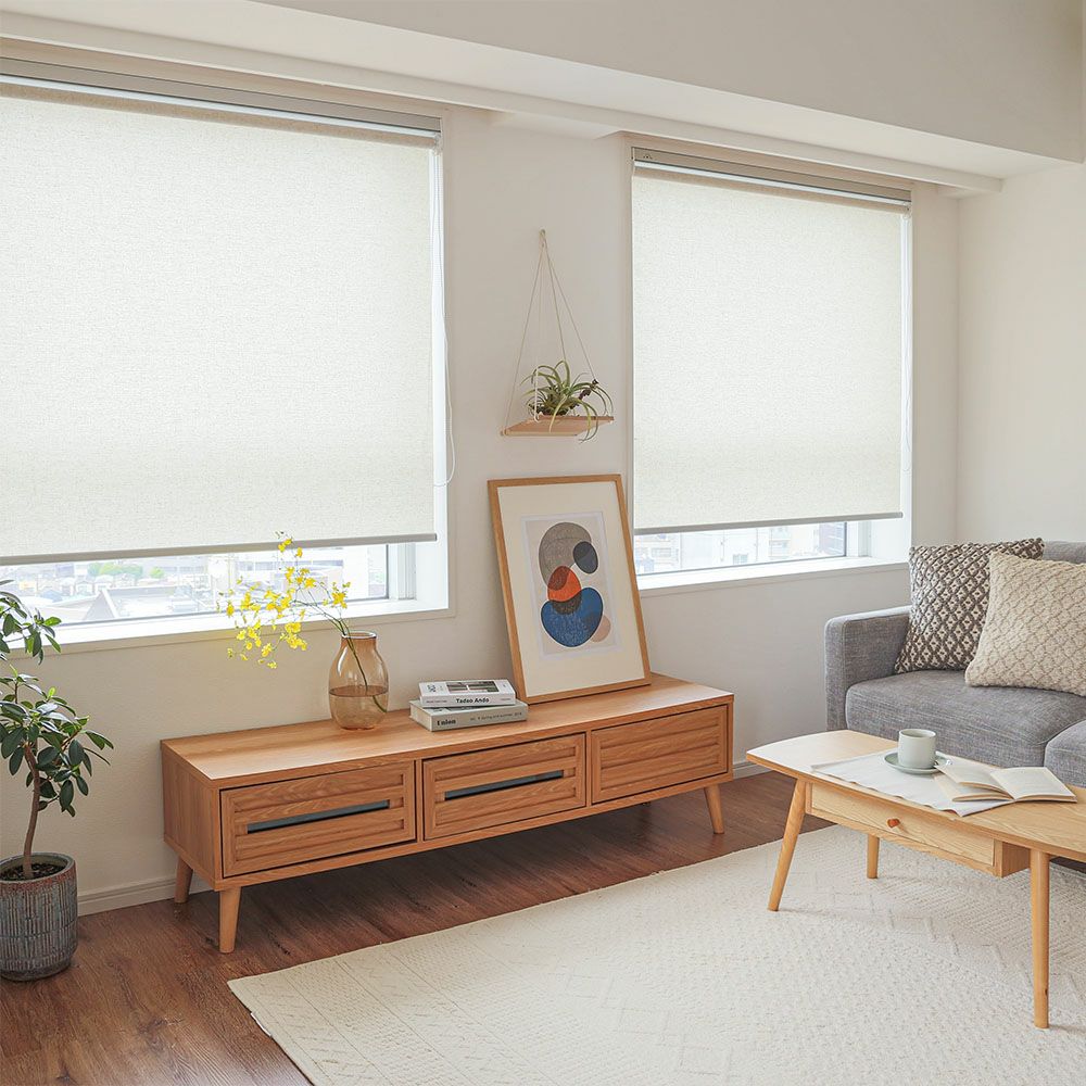リネン素材は自然繊維であり、独特の風合いや柔らかな質感を持っています。リネン素材のつっぱりロールスクリーンを使用することで、室内に自然な雰囲気と温かみをもたらすことができます。リネンの繊細な織り目や繊維の風合いが、空間全体に上品で優雅な印象を与えます。