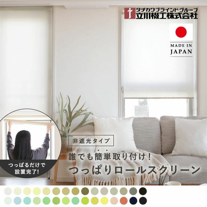非遮光タイプのつっぱりロールスクリーンの中で、当店最安値とお求めやすい価格と、通常のロールスクリーンと同生地でつっぱり式も作れるのは立川機工だけ! -
