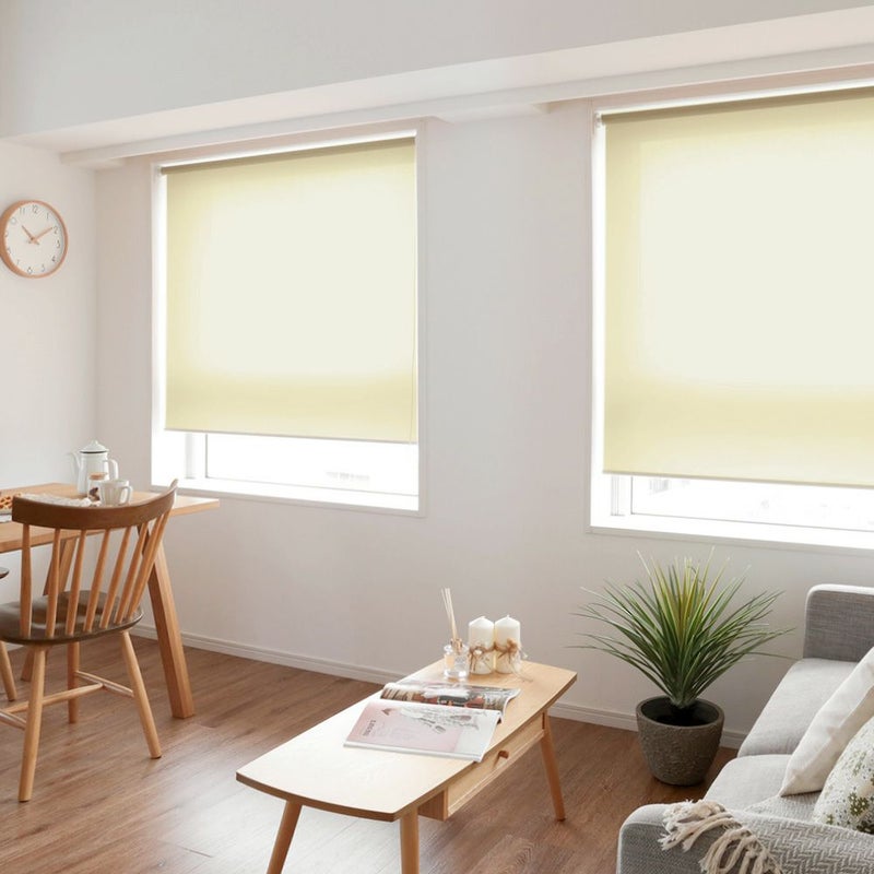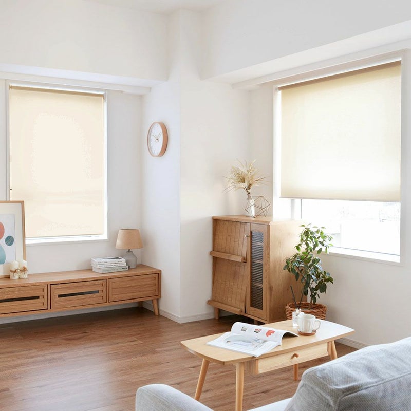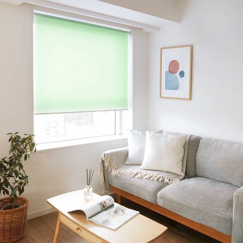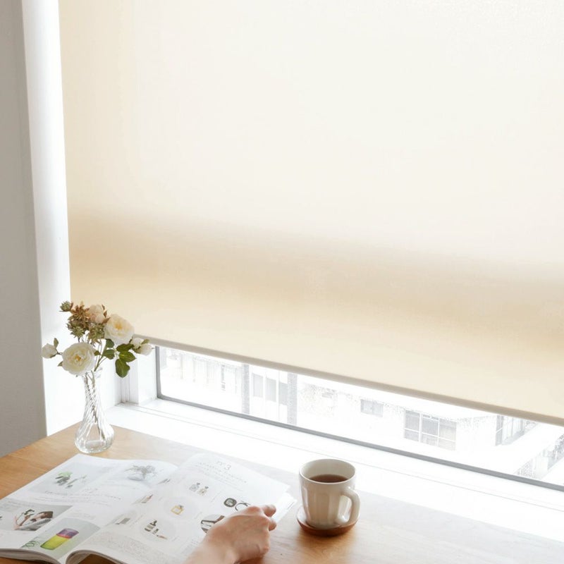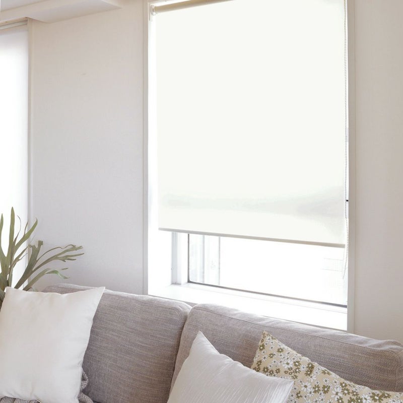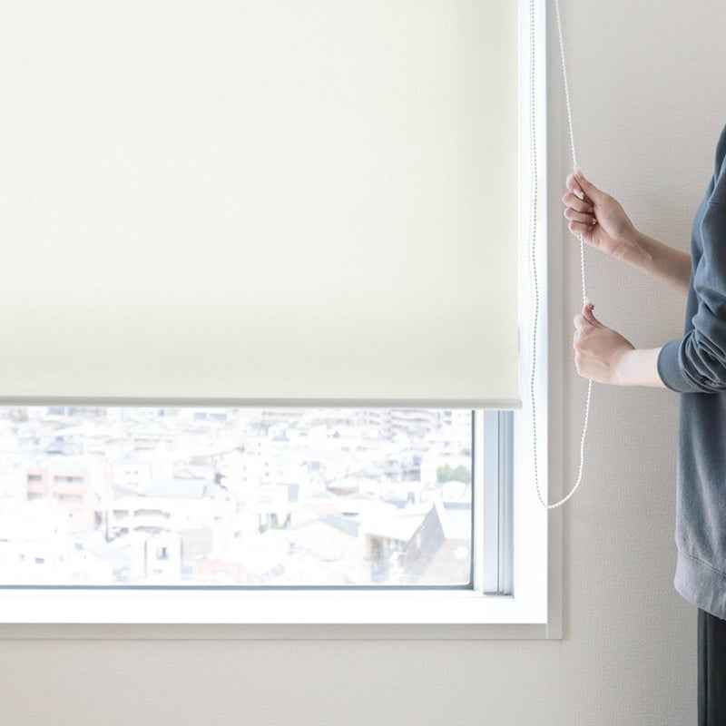 様々な用途で活躍するロールスクリーン。上下への開閉で光の入りを調節できるのがメリットのひとつ。眩しい光も柔らかく拡散しお部屋に取り込んでくれるので、お部屋の中の明るさもキープ。 つっぱり式は構造上どうしても両サイドに隙間が空いてしまいますが、こちらのロールスクリーンは左右の隙間もわずかなのもおすすめポイント。
