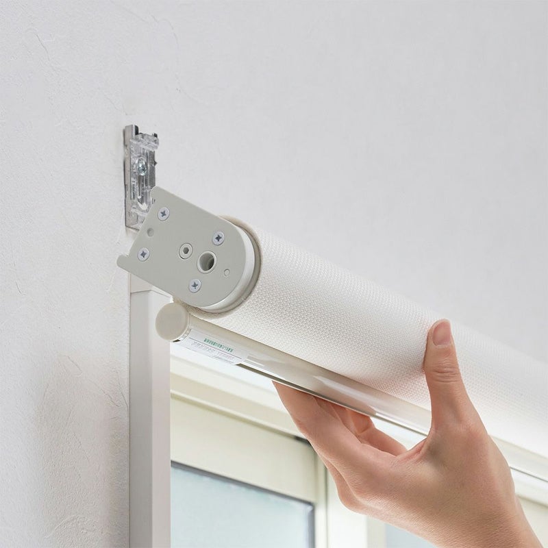 「ロールスクリーン初めて使うけど…取付って難しい?」いいえ!天井や正面にブラケットを設置したら、本体をカチッと付けるだけで終わる簡単な取り付けです。女性一人でも取り付けらるほど、意外と簡単なんですよ!