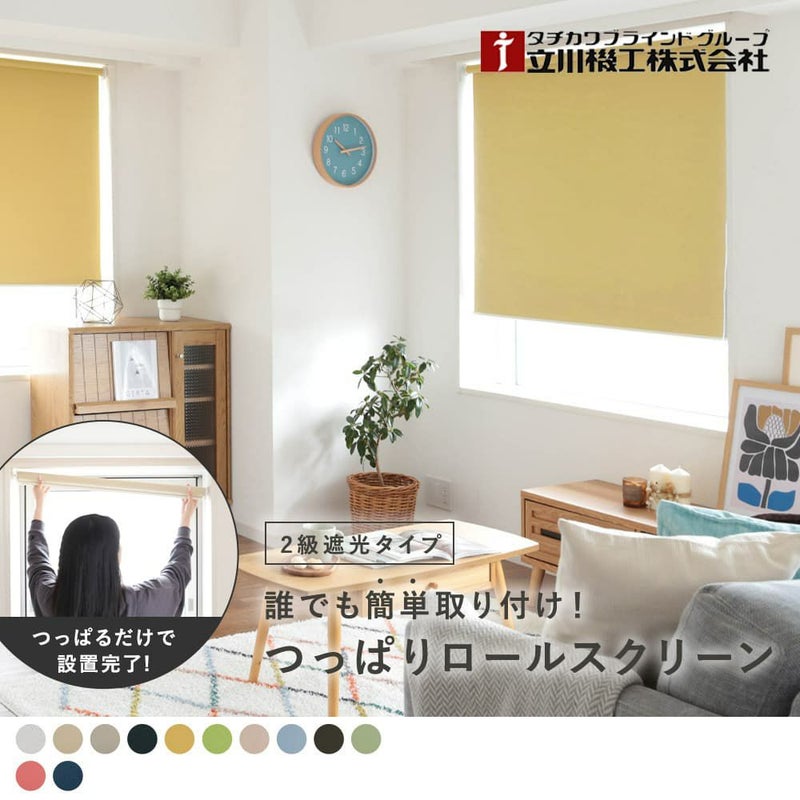 工事不要・穴をあけなくてもOKという手軽さから人気急上昇中のつっぱりロールスクリーンから日本製が新登場!12色から選べるカラフリーロールスクリーンと同生地で北欧の暖かみのある雰囲気を楽しめるテイストのロールスクリーンです。