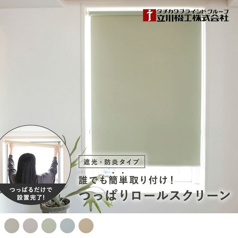 誰でもどこでも道具要らずで素早く取り付け可能なのも嬉しい! 2級遮光と安心の防炎機能も備わって、フェミニンで優しいテイストのお部屋にぴったりのカラーを揃えたつっぱりロールスクリーンです。 -