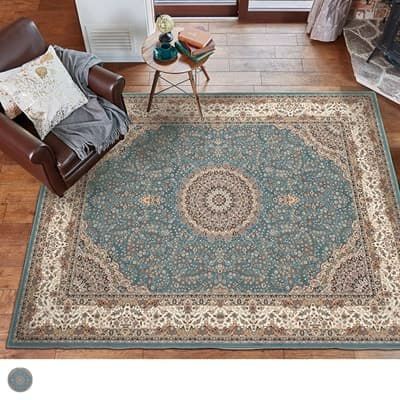 清潔感を感じさせるターコイズカラー。爽やかな気分にピッタリな、オリエンタルテイストです。高級絨毯のような豪華なデザイン
