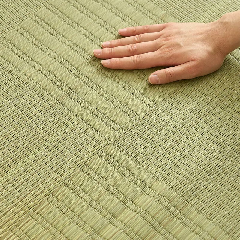 清らかな水と澄んだ空気の中で育った九州産のい草のみを使用し、職人がひとつひとつ手作業で加工を行った贅沢ない草ラグ。海外製のい草に比べて、弾力があり表面も厚くて丈夫。だからこそ快適なまま、ご愛用いただけます。