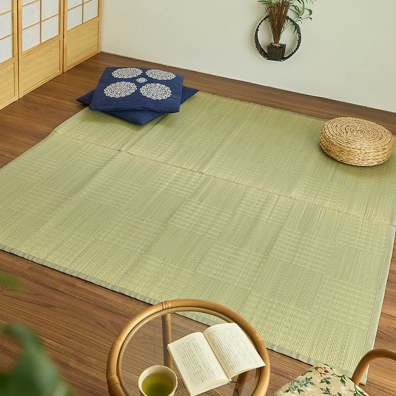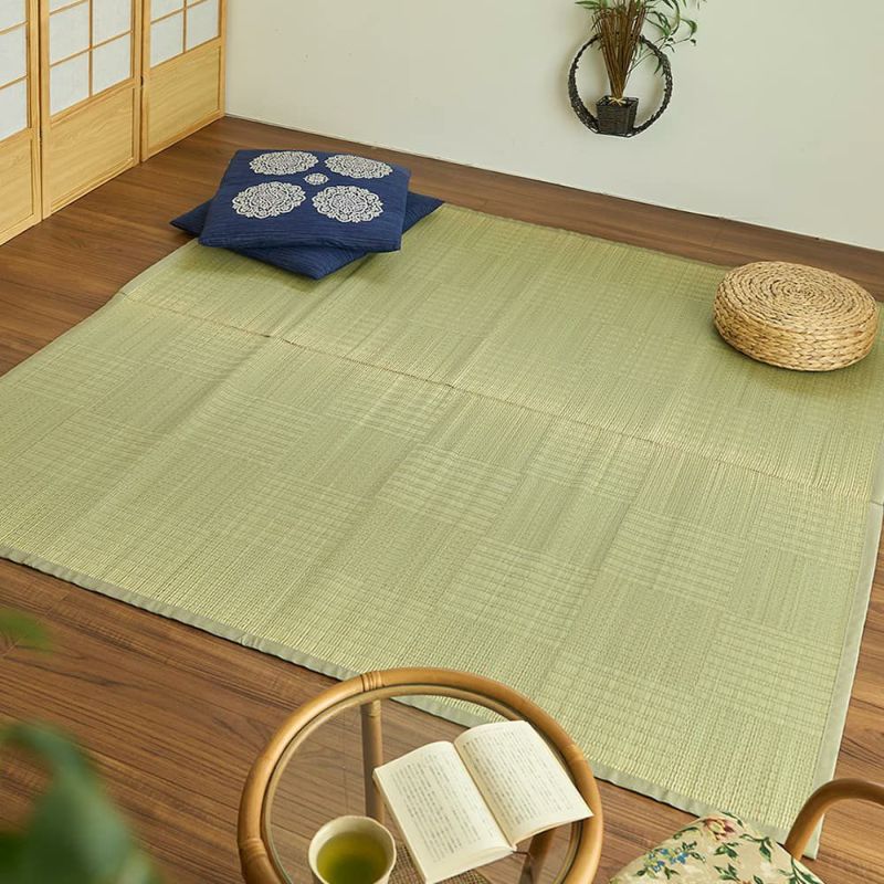 調湿効果が梅雨のじめじめ感を解消し、さらっとした肌触りが暑いお部屋の対策にも活躍するい草ラグ。