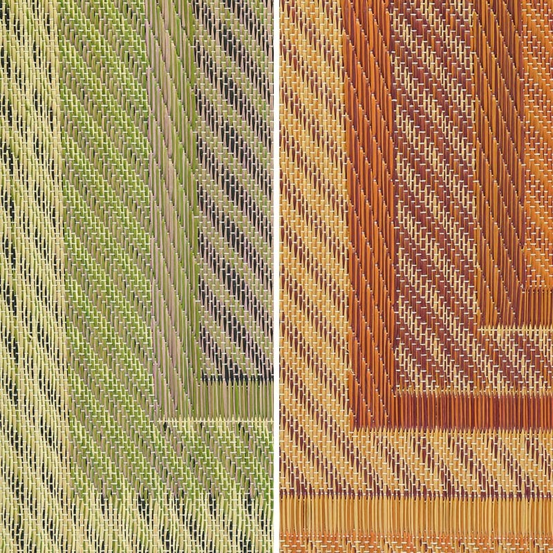 経糸の数が多く、細かい文様を緻密に表現できる「袋織り」という技法で織られたい草ラグ。繊細なグラーデーションカラーの2色からお好みのカラーをお選びください。