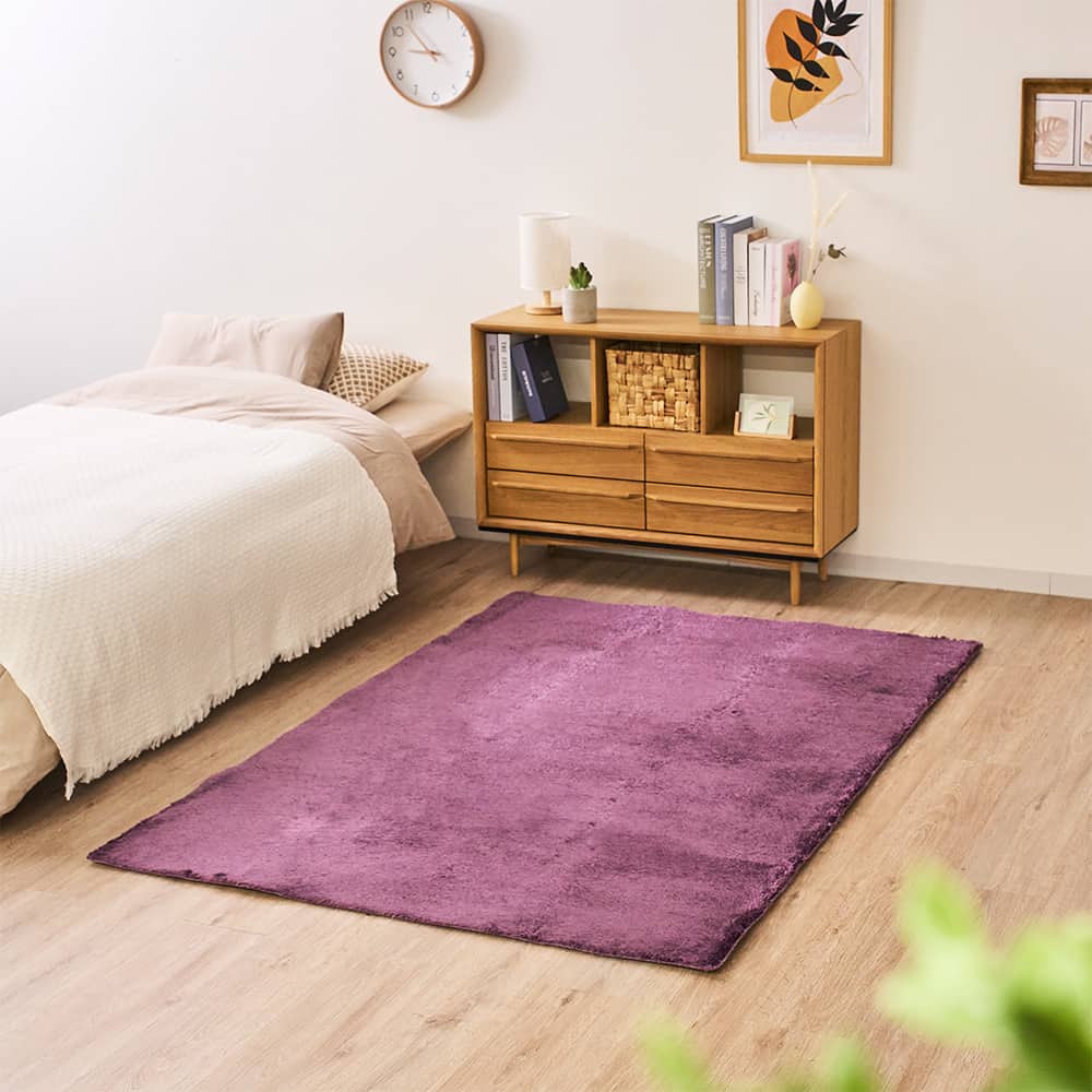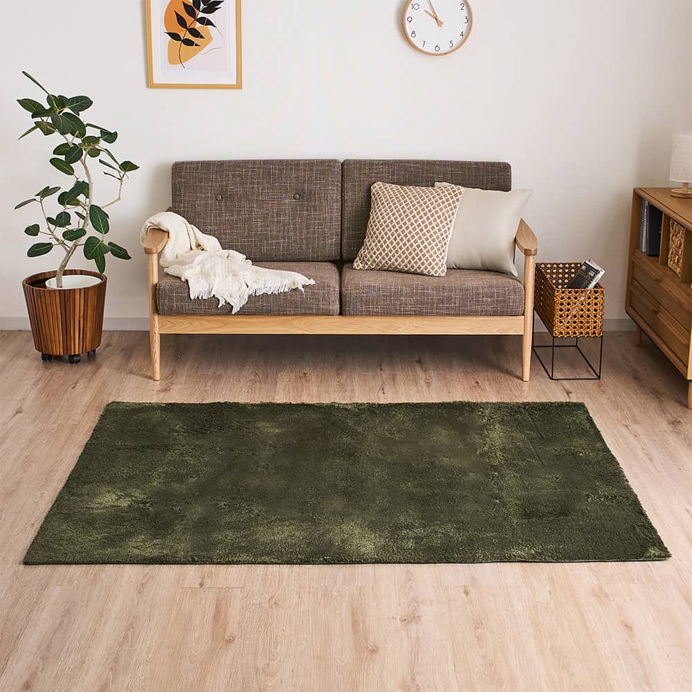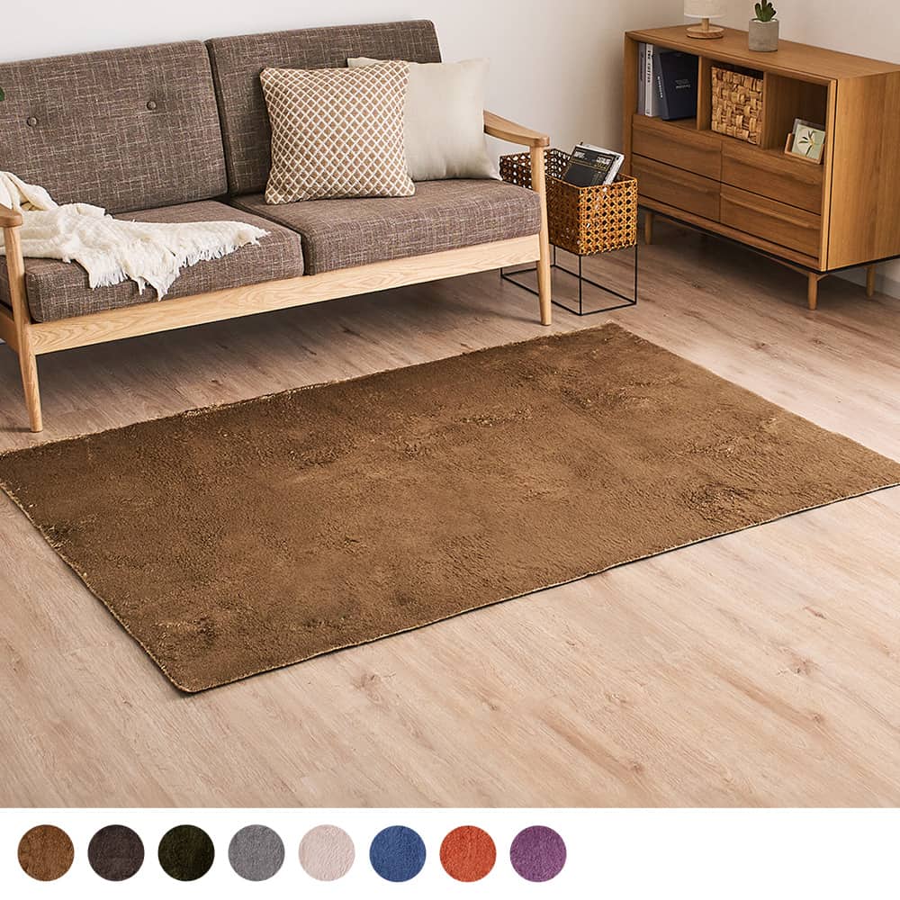毛足の程よいシャギー感と、光沢のある毛並みが高級感を演出します。シンプルでありながら、これ1枚でお部屋が高見えに!